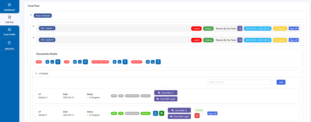 Once investor eligibility is confirmed, personalized subscription documents are prepared and shared—either manually or through digitally pre-filled forms—to simplify the subscription process. Investors can easily execute agreements using integrated e-signature solutions such as DocuSign. Supporting documents, including W-9 forms, identification, and entity-related materials, are collected to meet compliance requirements.